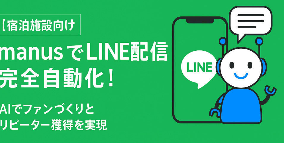 AIエージェントプラットフォーム 「manus」 を使えば、LINE公式アカウントを活用した宿泊施設の情報発信を完全自動化できます。